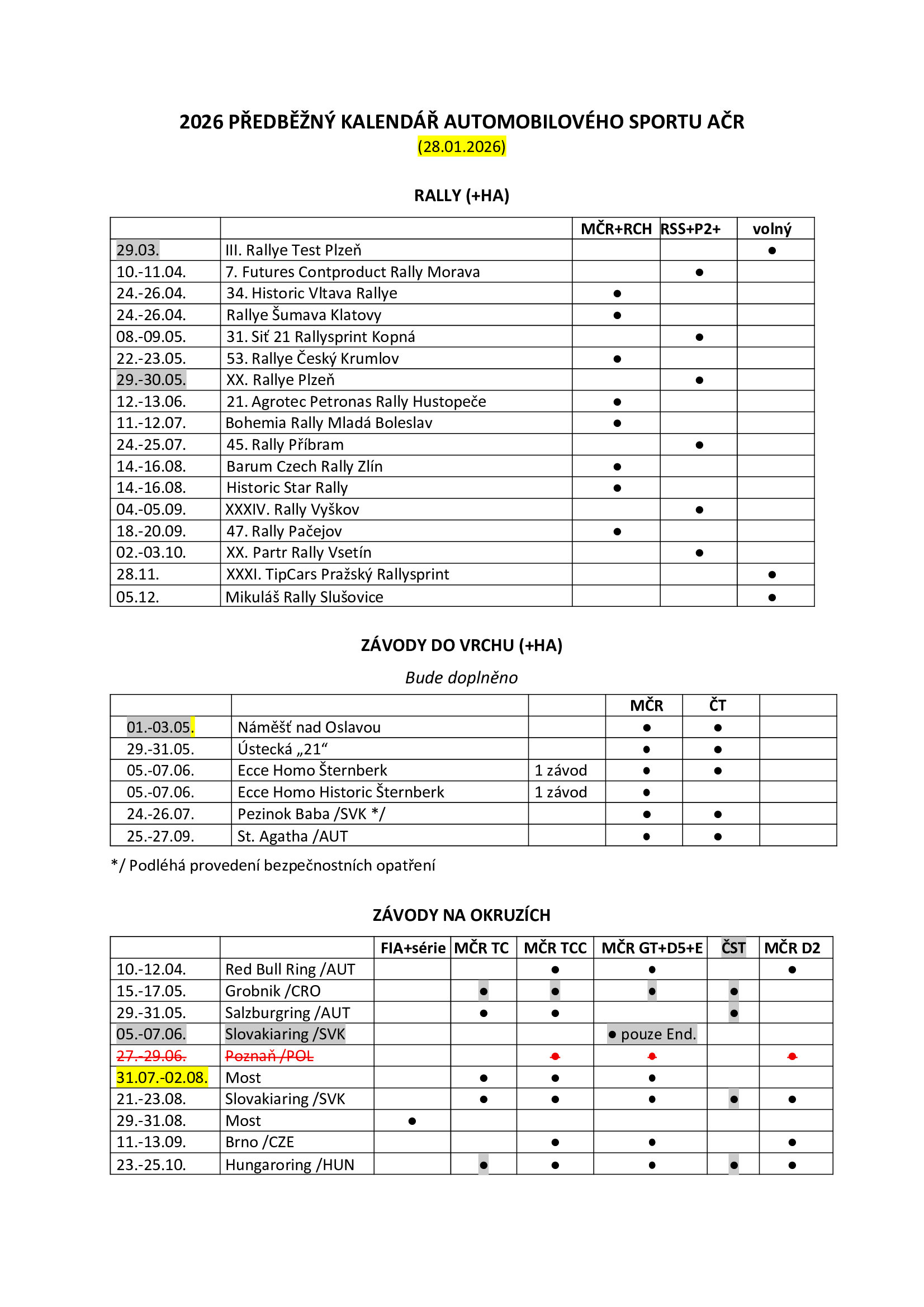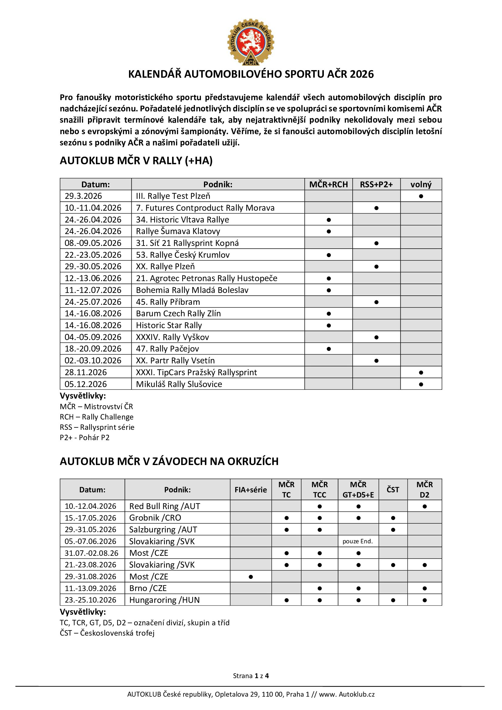 AKTUALIZACE: Kalendář automobilových závodů v ČR 2026