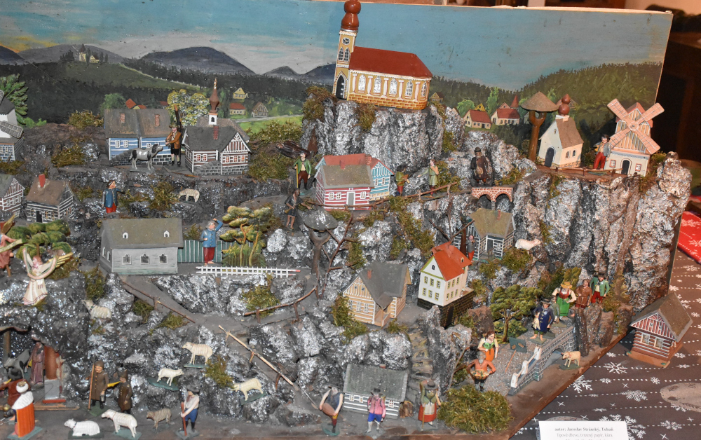 Sto let starý betlém podkrkonošského typu Josefa Hraby, bývalého kostelníka a hrobníka (z dané oblasti se tyto exponáty vyznačují tím, že levou polovinu tvoří stylizované město Jeruzalém, pravá strana je krajina Podkrkonoší s typickými ukázkami lidové architektury – dřevěnkami)
