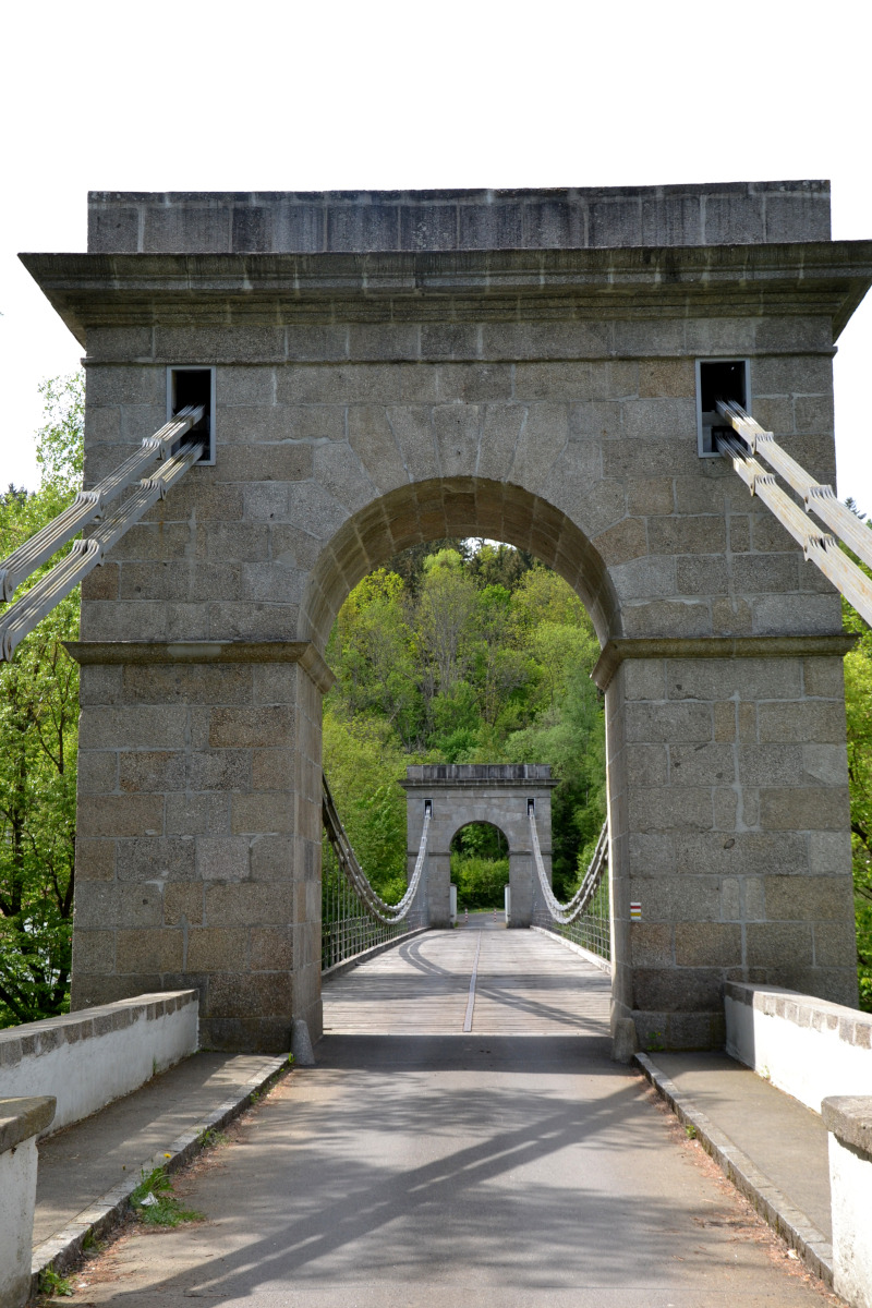 Nosnou konstrukci tvoří čtyři řetězy uspořádané do dvou dvojic. Řetězy jsou uloženy na dvou kamenných pylonech o půdorysném rozměru 4 x 9 metru a výšce nad vozovkou deset metrů a jsou kotveny do čepů uchycených do železných desek v kotevních blocích. Ty jsou uloženy na dvou kamenných pylonech, branách vysokých třináct metrů.. Most je dlouhý 157 metru a 6,8 metru široký.