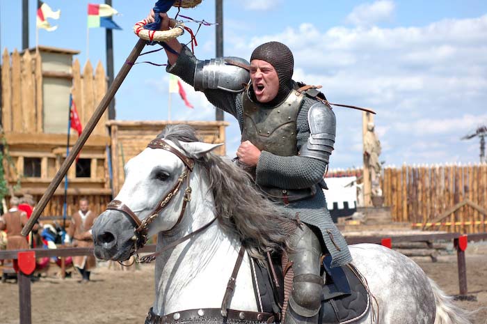 Středověká vesnička je otevřena ve všední den od 10 do 18 hodin, o víkendu od 10 do 22 hodin. Takový pěkný podzimní večer tady má své kouzlo. Ale pouze o víkendu probíhá program „Rytířské romance a balady“. Vždy v sobotu a v neděli od 14 a podruhé od 18 hodin. Jezdecké a šermířské souboje předvádějí zkušení kaskadéři oblečení do dobových pestrobarevných kostýmů. Řinčení zbraní, krkolomné pády a vzpínající se koně sleduje celé publikum téměř bez dechu. Kaskadérská show je doplněna ještě současnými pyrotechnickými efekty. Nechybějí půvabné tanečnice ani klauni, prostě středověk se vším všudy.
