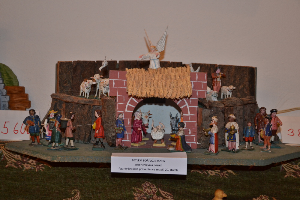 Místní betlémáři jsou zastoupeni ať již historickými nebo současnými pracemi. Za všechny jmenujme betlém Jaroslava Zajíce, který svá díla zasazoval do hradních zřícenin, dále skříňový betlém Františka Junka ze Stružince z přelomu 50. – 60. let 20. století, jeho jmenovce Josefa Junka z Košova, „Želechovský betlém“ s kralickými figurkami. K vidění je i betlém neznámého autora z roku 1914 složený z velkého množství menších kralických figurek zdobený kůrou, klasy a mechem. Zapomenout nesmíme i na pilného řezbáře Františka Mühla z Heřmanic, jehož na výstavě připomínají jesličky se základními betlémovými figurkami.