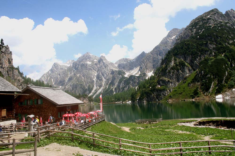 My se dnes vydáme směrem doprava, to znamená, že ze St. Johannu pojedeme směr Wagrain a Altenmarkt, odtud po vedlejší silnici na Forstau. Zhruba po pěti kilometrech, ještě před obcí, uvidíte nenápadnou odbočku doprava s nápisem Fager. Po dvou kilometrech skončí sice na okraji lesa pěkná asfaltka a začíná šotolinová cesta. Nenechte se odradit a hurá vzhůru. Nepotřebujete ani offroad, cesta je široká, tvrdá, bez výmolů a děr, takže se nemusíte obávat, že byste si poškodili svůj vůz. Asi po osmi kilometrech se vám těsně pod vrcholem začnou otevírat nádherné výhledy na masiv Dachsteinu. Cesta vás zavede až na samotný Fager Alm ve výšce 1759 metrů s horským hotelem Trinker Alm. Tam si můžete v klidu posedět, občerstvit anebo si obout „pohorky" a vyrazit na nenáročnou túru překrásnou přírodou. Doporučujeme vám si rezervovat celý den, stejně jako na druhý výlet.