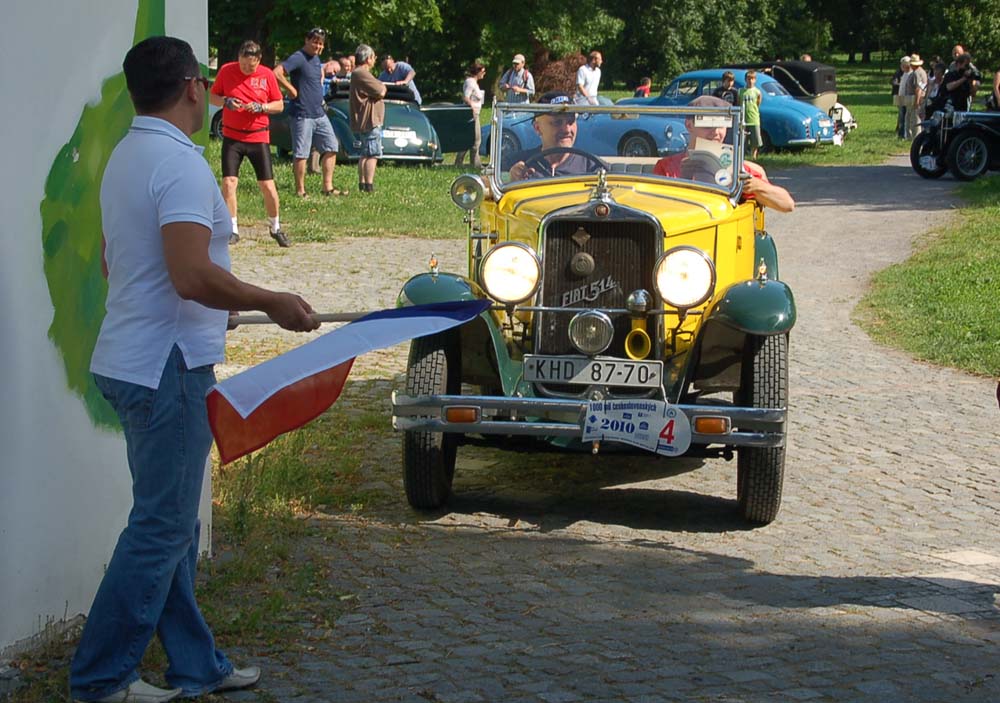 [*8 ]K nim se v pátek ráno přidají další posádky, které pojedou jen poloviční vzdálenost. Klobouk dolů před největšími odvážlivci, kteří v hustém provozu ukrajují kilometry se svými až sedmdesát let starými automobily. Z vozů, které ve čtvrtek odstartovaly je nejstarší Fiat 514 z roku 1930 pana Jana Egidyho, který jen litoval, že jeho věčná společnice Brita musela tentokrát zůstat doma, protože Fiat je pouze dvoumístný. Horkou chvilku zažil už před startem, když zjistil, že mu někdo z chladiče odšrouboval sošku.