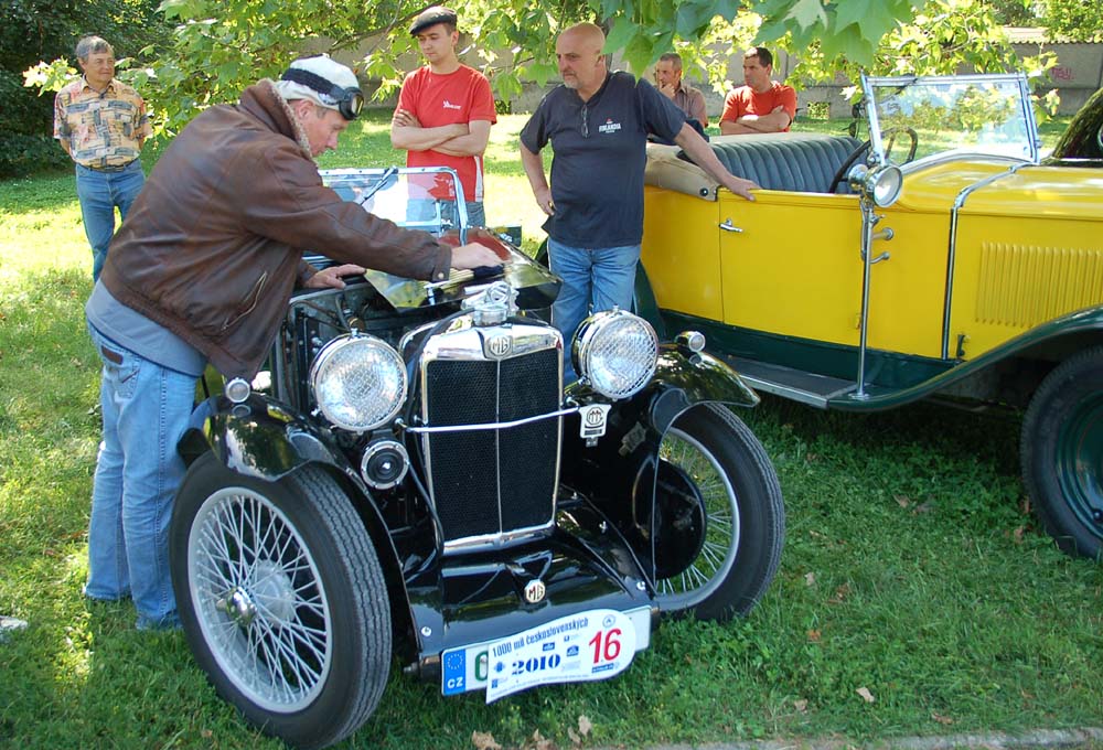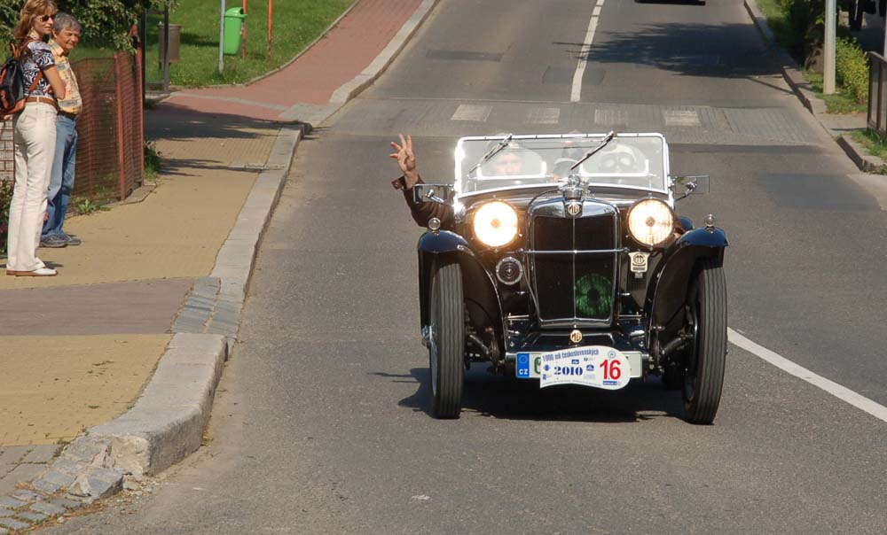 Jak se záhy ukázalo, nešlo o vandalství, ale vtípek Mirka Krejsy jako odplata, zato, že mu Egidy den před tím sdělil, že je změna a startuje se až v sedm hodin. Právě jablonecký veteránista vyrazil na trať jako druhý s vozem MG Midget PA z roku 1934. Celou trať absolvuje také paní Markéta Profeldová s Jaguarem SS 100 (1938), první etapu jede sice s manželem, který pro druhou část vyndá z garáže dalšího Jaguara.