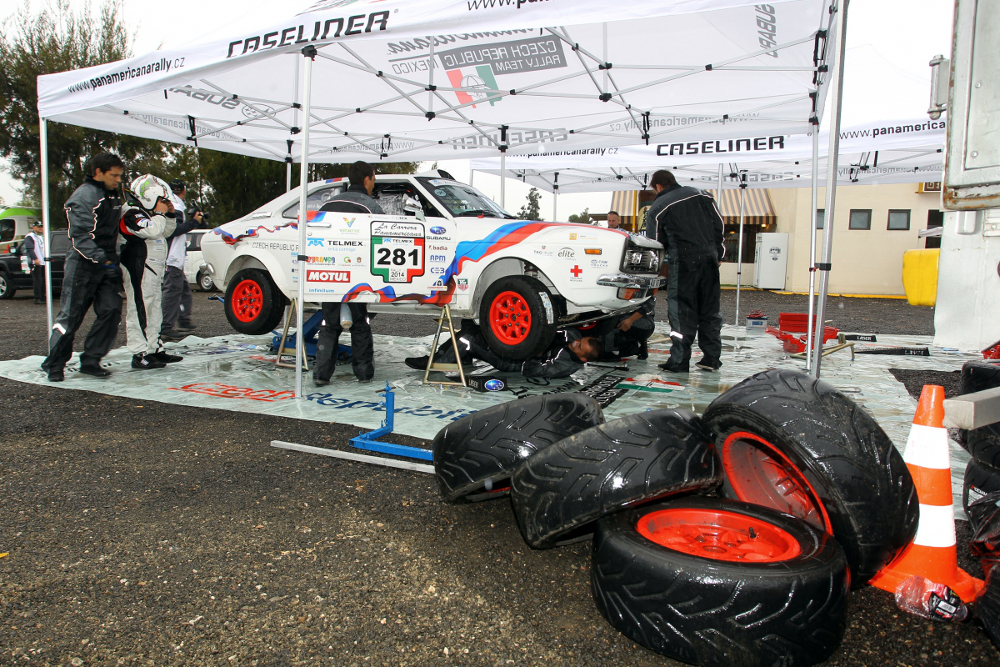 Nutno dodat, že podobně zběsilému přesunu čelí i posádky doprovodných vozidel, a tak není nouze o situace, kdy unavení mechanici ženou pětitunový servisní Ford F350, po střechu naložený náhradními díly, po státní silnici i stopadesátkou, jen aby stihli včas rozložit zázemí v servisní zóně. Její organizací a profesionalitou naopak český tým v Mexiku vyniká, ani místní favorité s 650koňovými studebakery se nemohou pochlubit tak kvalitním zabezpečením. A když už jsme u rychlosti, v letošním ročníku se pořadatelé rozhodli omezit maximální povolenou rychlost na 250 km/h. Českých posádek se to sice netýká, ale ještě vloni pokořovaly na rovných úsecích některé studebakery i hranici 300 km/h.