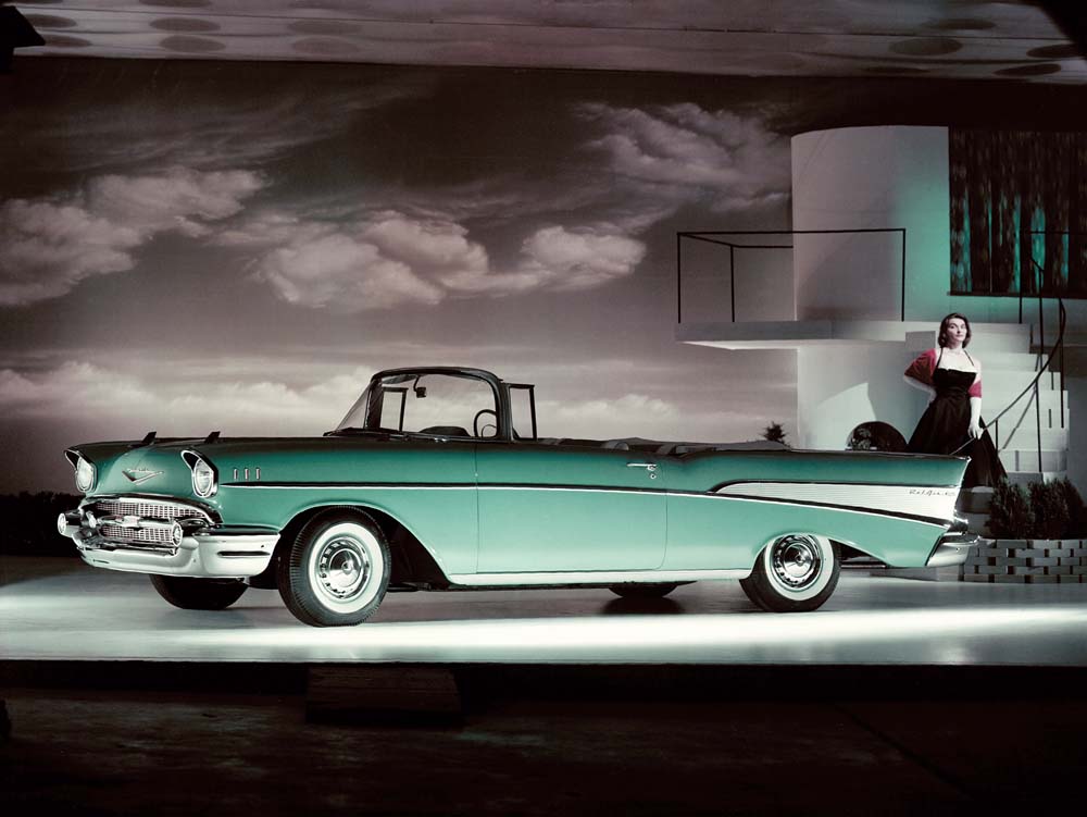 Chevrolet Bel Air představoval ideální volbu pro americké rodiny během 50. let, byl stylový i respektovaný. Byl zkonstruovaný tak, aby měl moderní, jasný vzhled, jako to dokumentuje kabriolet Bel Air v barvách „mořská mlha“ a bílá. Velká zpětná světla, bohatě postříbřené panely a zlaté symboly Chevron na předním nárazníku dodávají pravou dávku stylovosti. Pro milovníky veteránů se stal kabriolet Bel Air vyhledávaným sběratelským kouskem.