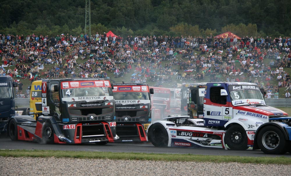 Hned první sobotní závod byl lahůdkou pro české fanoušky, když z pole-position odstartoval Adam Lacko s Renaultem MKR a své místo uhájil s bezpečným náskokem až do cíle před Davidem Vršeckým s Buggyrou, který naopak musel o druhou pozici tvrdě bojovat s vedoucím jezdcem šampionátu, Němcem Jochenem Hahnem s tahačem MAN, jehož odsunul na třetí příčku.