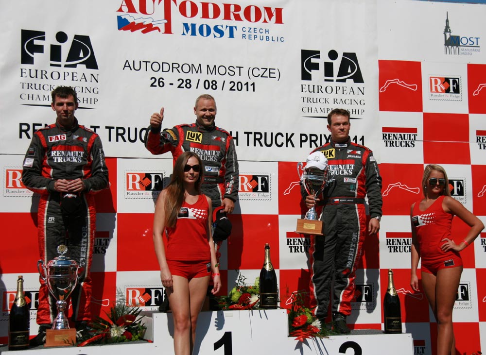 V neděli si pak sen o totálním vítězství konečně splnil český tým MKR Technology, jehož černočervené Renaulty ovládly už kvalifikační trénink, kde jezdci obsadili první tři příčky v pořadí Bösiger, Oestreich a Lacko. A to po takřka bezesné noci mechaniků, kteří museli zprovoznit Oestreichův tahač takřka zdemolovaný ze sobotního závodu. V samotném závodě pak nikomu nedali šanci a ve stejném pořadí projeli i cílem. Adam Lacko navíc s velkým štěstím, když musel v posledním okruhu odvracet technickou poruchu svého stroje.