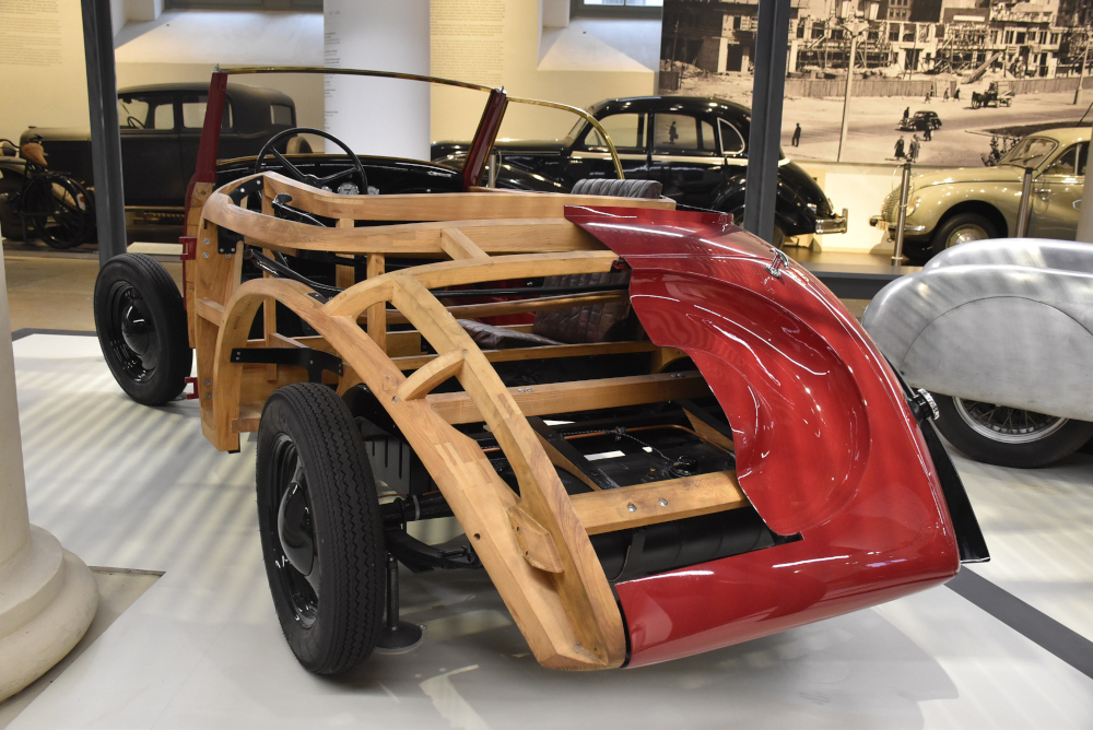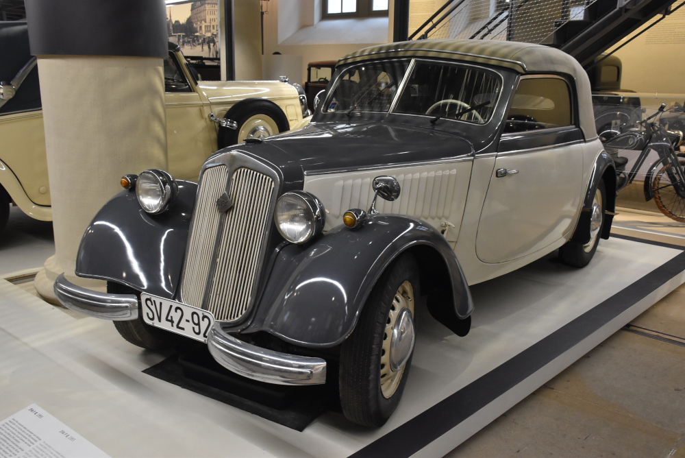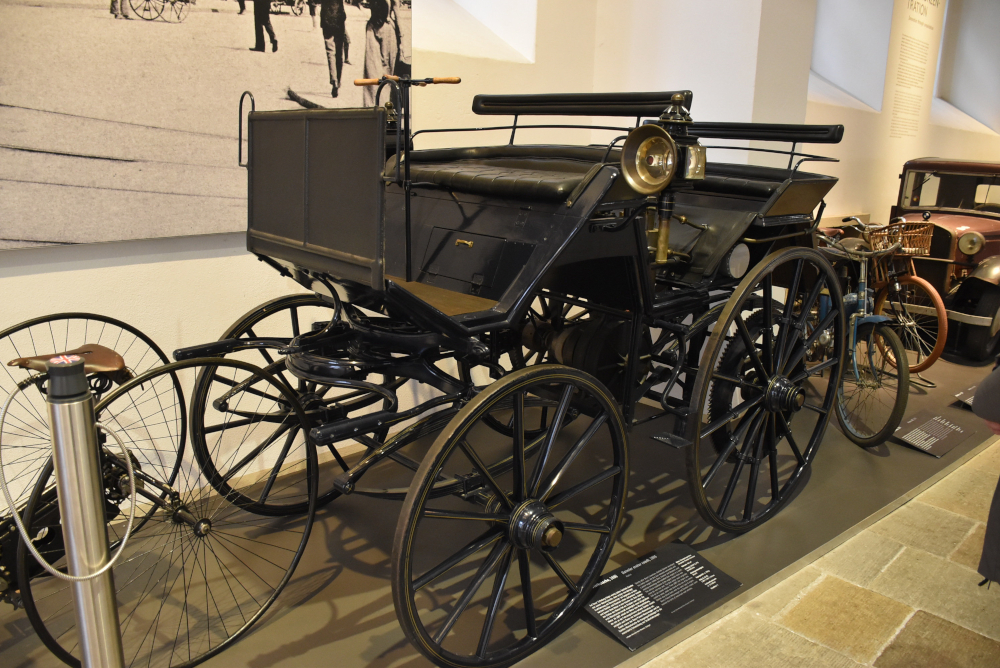 Přízemí je věnováno historickým automobilům a motocyklům převážně německé výroby. Hned v úvodu uvidíte tři repliky zapůjčené z muzea Mercedes Benz ve Stuttgartu. Jednak Benzovo motorové kolo a tříkolka a Daimlerův první čtyřkolový motorový kočár.