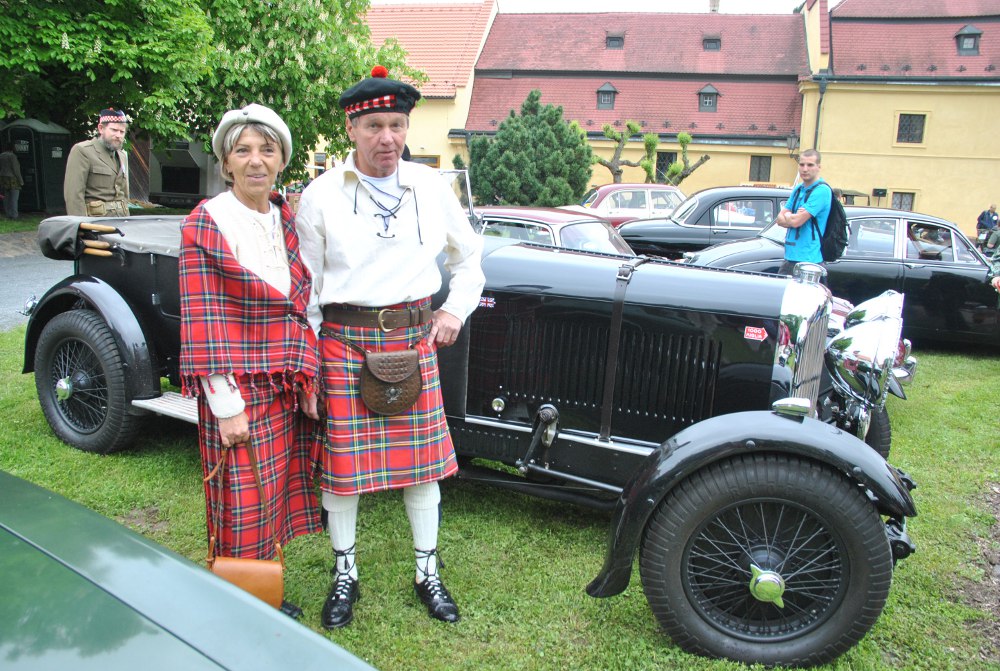Z Jablonce dorazili po ose s Lagondou „skotští“ manželé Krejsovi, kteří také nevydrží chvilku doma. Ještě v sobotu jsme je potkali v jižních Čechách na Rallye Křivonoska. Manželé Profeldovi vystavili tentokrát krásný MG SA, rok výroby 1936.