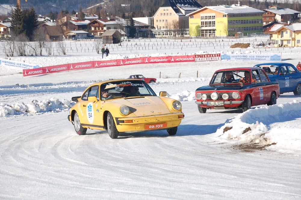 Už potřetí se sešli v rakouském městečku Altenmarkt, nedaleko lyžařského centra Zauchensee, účastníci zimní Historic-Ice-Trophy. Jak název napovídá, jde o soutěž, respektive jízdu historických automobilů na ledové dráze.