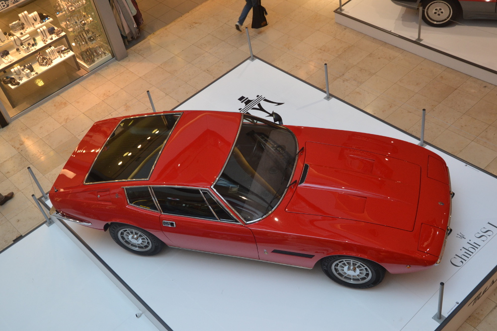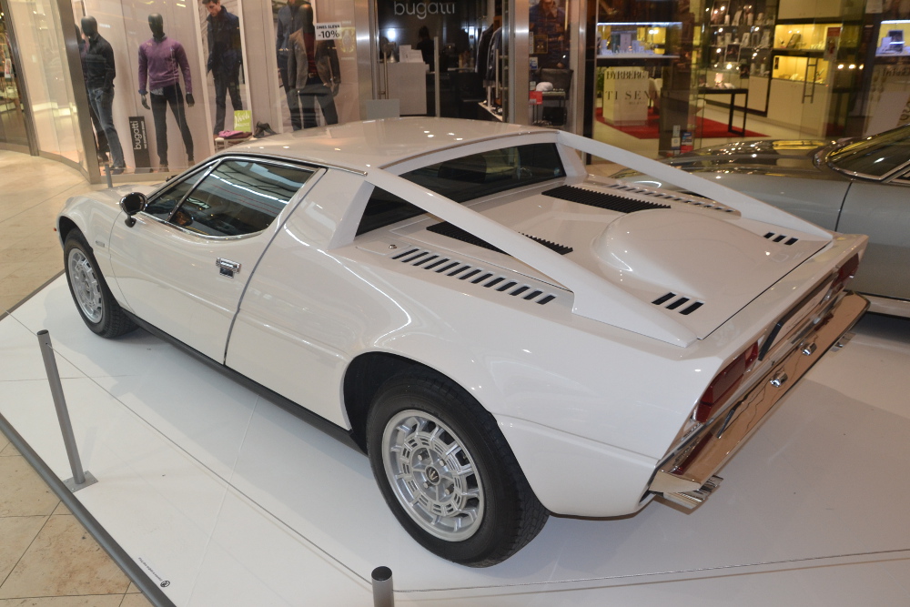 Jeden z těchto nádherných automobilů a jediný v ČR je zaparkován právě na Arkádách. A společnost mu dělá model Khamsin z let 1972 až 82 (430 kusů). Pod kapotou se ukrývá osmiválec 4,9 litru s výkonem 320 k. Design vytvořil Marcelo Gandini ze studia Bertone.