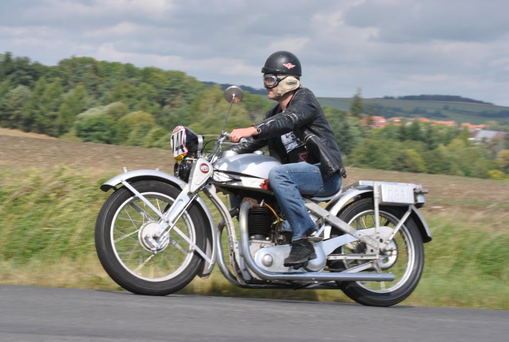Jako první se v 11 hodin vydá na orientační jízdu z domažlického náměstí pan Petr Sojka na motocyklu HB 2 ¾ HP, vyrobený v roce 1920. Ze strojů do roku 1930 jmenujme dále třeba Harley Davidson, Norton 16 H, BMW R47, Humber, Standard 350, Tornax 600, Indian, Ariel a chybět nebude ani pan Václav Slovák s Böhmerlandem 600. Mezi mladšími ročníky převažují stroje české výroby Jawea, ČZ nebo Praga, ale najdeme i značky NSU, DKV, BSA, Horex Rudge atd.
