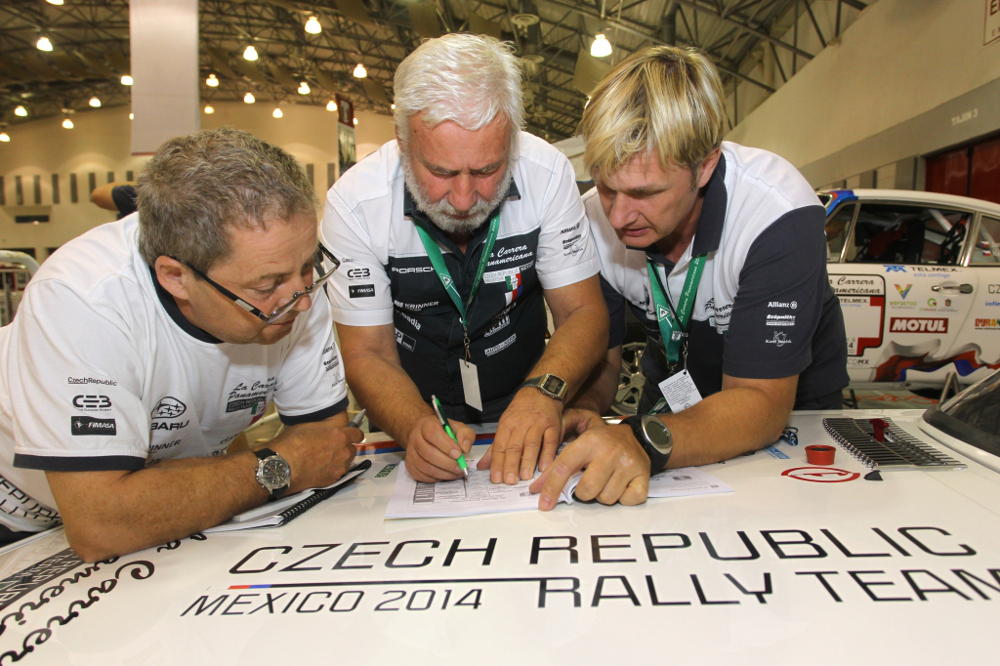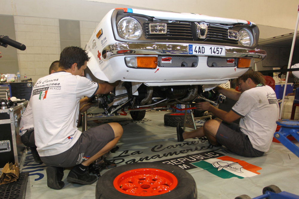 Česká sestava odcestovala do Mexika ve dvou vlnách. Ta první čítala všechny posádky, mechaniky i kameramanku Vlastu Čtvrtníčkovou a měla na starost zajištění všech doprovodných vozidel v Mexico City, včetně těžkých servisních pokapu. Po příjezdu do Veracruz je čekalo vybavení všech formalit a převzetí obou kontejnerů se vzácným nákladem v podobě všech závodních speciálů a servisního materiálu. Všichni se dali do práce, podle poznatků z posledních testování před odjezdem ještě mechanici pod vedením Pavla Janouška dokázali řadu detailů na všech vozidlech poupravit.