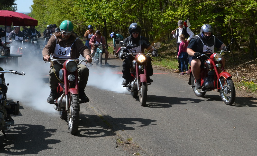 Kytínský Michal Pomahač vsadil na Suzuki, chouzavský Josef Holakovský na elegantní skútr Lambretta 125 z roku 1957 a jeho dcera Kateřina pak na motokolo Mobylette. Nechyběl ani zahraniční hrabě René Cornillak se strojem Ultima, vyrobeným v roce 1927.