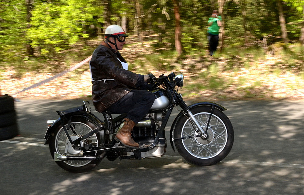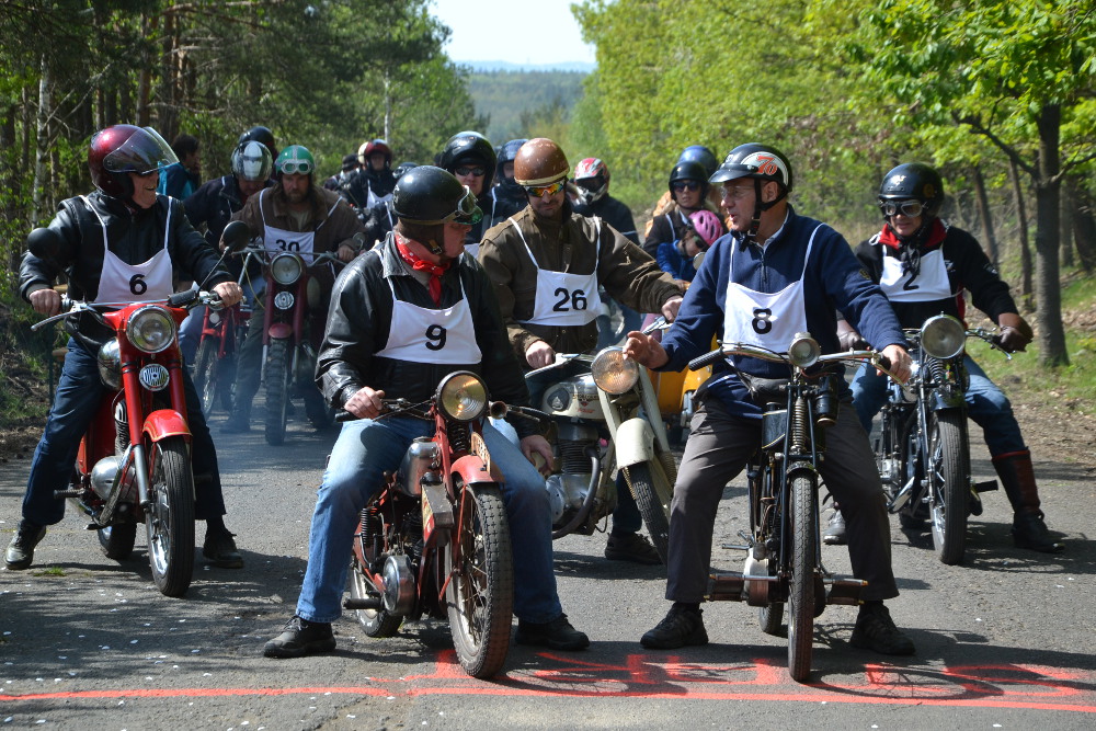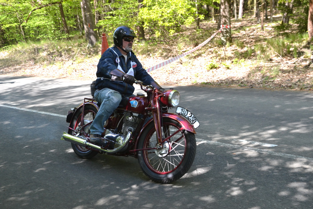 Letos se sešlo na šest desítek motocyklů, dvě sajdky a jeden Velorex, aby pod vedením Petra Hůlky absolvovali jednu a dvě závodní jízdy. Kromě motocyklů Jawa bylo k vidění i kolik zajímavých strojů. S nejstarším motocyklem, pochopitelně na řemenový pohon, značky Douglas z 1914 přijel Petr Hošťálek. S druhým nejstarším Monet Goyon z roku 1924 startoval mníšecký Tomáš Fuchs, jinak bývalý soutěžní jezdec a excelentní motorář.