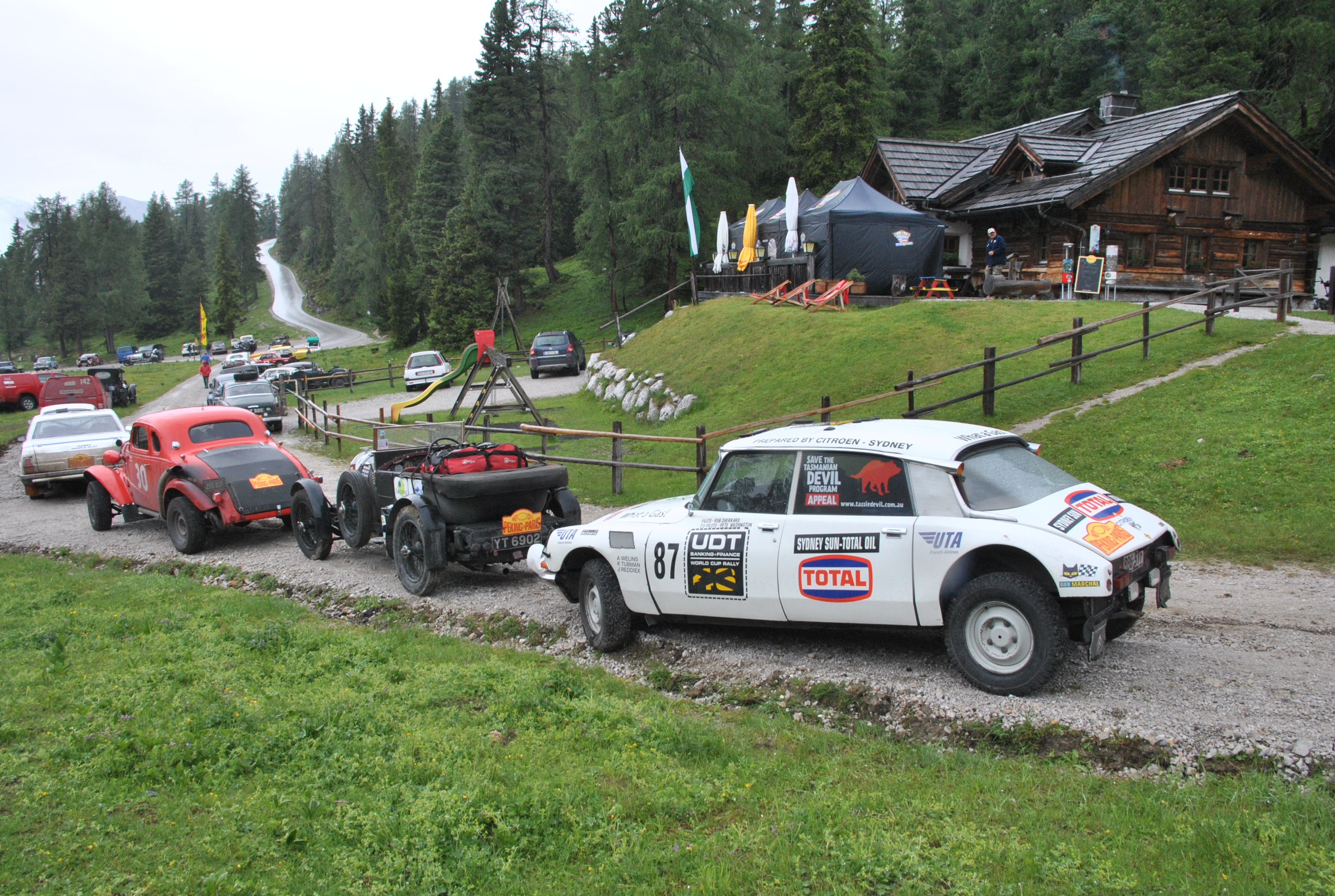 Celou soutěž pořádá jen malá skupina Angličanů s doprovodnými automobily Toyota Hilux a vše si zajišťují úplně sami. V Rakousku dokonce nepotřebovali ani policejní asistenci při uzavírce silnice třeba na Stoderzinken nebo na Planai. Při tom jsme si vzpomněli na Jízdu Slunovratu (v porovnání s Rally Peking – Paříž jde o miniakci okresního formátu), kde se to Městskou policiií jen hemžilo. To jen na okraj.