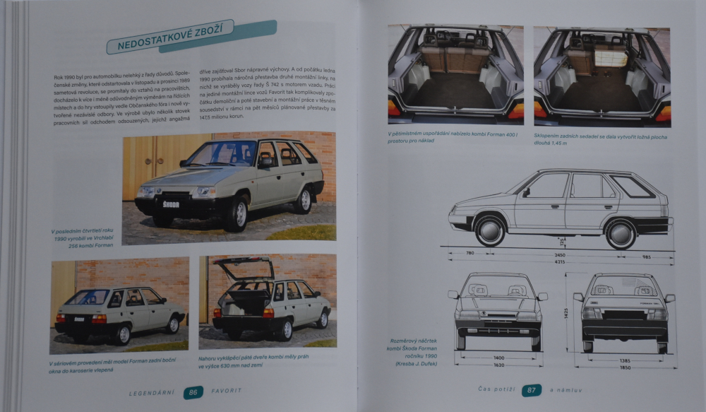 Zvláště zajímavé jsou třeba kapitoly o prototypech nebo nejrůznějších derivátech odvozených ze sériového Favorita nebo kombi Forman. Opomenout nelze ani úspěchy ve světový rallye, kterých se pod vedením tehdejšího šéfa Motorsportu Pavla Janeby zasloužili Pavel Sibera, Emil Triner, Vladimír Berger a Jindřich Štolfa