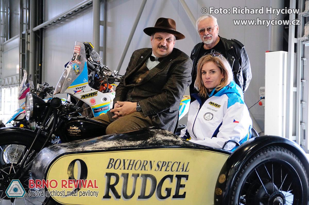 Na stánku bude vystaven i motocykl „z plakátu“ Rudge Ulster z roku 1929. S tímto sidecarem vyhrál E. Boxhorn svou kategorii v nejprestižnějším závodě do vrchu u nás Zbraslav–Jíloviště 1929. Značka Rudge patřila na přelomu třicátých let k nejrychlejším, v roce 1930 obsadili první tři místa v kategorii Junior a první dvě místa v kategorii Senior na nejvýznamnějším závodě Tourist Trophy na ostrově Man. Vítězství, které žádná jiná značka nezopakovala. Jako třešinka na dortu bude vystaven ještě jeden sidecar Rudge, tentokrát model TT Replica osazený kompresorem Marshall.