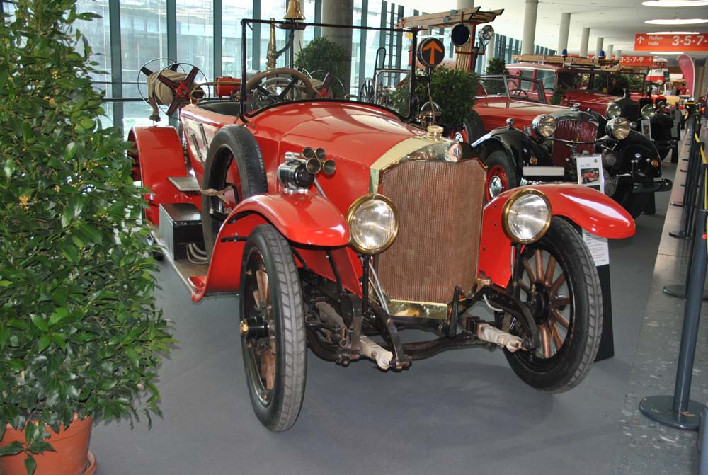 Zatímco nedůvěra, používat v boji s ohněm automobily s benzinovými motory pomalu opadávala, byla ve 20. a 30. letech velká i malá auta, luxusní nebo lidová auta přestavována. Teprve po roce 1910 začaly hasičské sbory vyjíždět s vlastními automobily k požárům. Zprvu musely vyrovnat s pochybnostmi, jestli jet k ohni se zážehovými motory, protože byla tendence vyměnit koňská spřežení za elektromobily a parní automobily. Samotné hasičské čerpadlo patentované Gottliebem Daimlerem v roce 1888 poháněné spalovacím motorem bylo vmontované do parní stříkačky, aby nemělo obyvatelstvo obavy. Hasičské čerpadlo, které lze shlédnout ve firemním muzeu ve Stuttgartu bylo ale stále tažené koňmi.