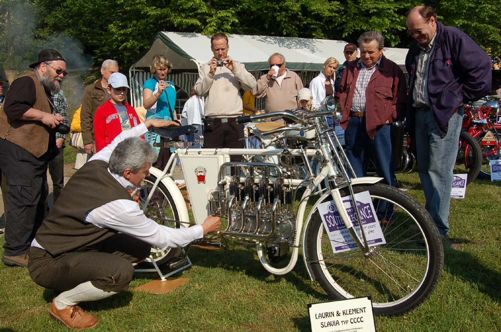Každý návštěvník se zastavil u motocyklu Laurin Klement Slavia Typ CCCC, prototyp čtyřklikového čtyřválce z roku 1904 pouze v jediném exempláři. Nešlo sice o originál, ale znovu postavený stroj v letech 2003 až 2006. Ale ruku na srdce, komu by to vadilo, protože pohled na tento unikát doslova vyrážel dech. To by pánové Laurin a Klement koukali, co jeho dnešní majitel pan Pavel Malaník dokázal. Klobouk dolů, stejně jako před všemi dalšími nadšenci, kteří zachraňují automobilovou historii.