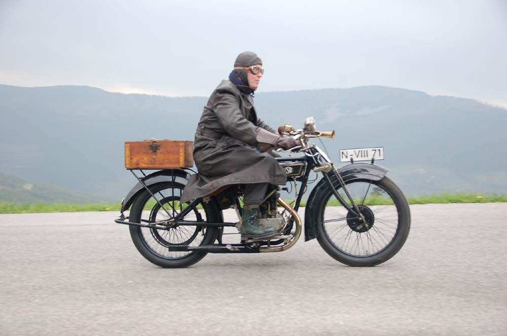 Studenecké míle jsou ale od ostatních veteránských akcí přeci jen něčím zvláštním. Trať dlouhá asi sedmdesát kilometrů vede totiž na Špindlerovku po jedné z nejvýše položené horské silnici u nás. Tedy do výšky 1200 metrů nad mořem. Letos se tuto kvótu rozhodla zdolat i skupina pánů na řemenových motocyklech – Michal a Vratislav Hořčičkové se stroji Triumph H (1916) a Douglas 350 (1922), dále Vladislav Kučera se strojem San Sou Pap (1923) a David Mikoláš s NSU 251 (1928). Pouze jednomu se to nepodařilo pro technické potíže hned ve Špindlerově Mlýně. Ale třeba stroj Vladislava Kučery od Kopidlna měl i v posledních metrech pod vrcholem stále na vrch a jel jako za mlada.