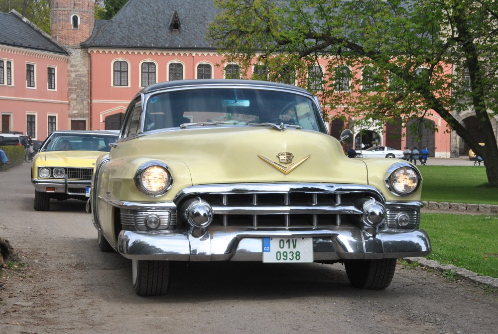 Ačkoliv meteorologové nepředvídali na sobotu zrovna dvakrát pěkné počasí, tak na Sychrově ani nekáplo, občas vysvitlo i sluníčko. Možná předpověď odradila také některé majitele amerických křižníků, ale přesto se do zámeckého parku sjelo sedm desítek historických automobilů od roku 1916 až po osmdesátá léta.