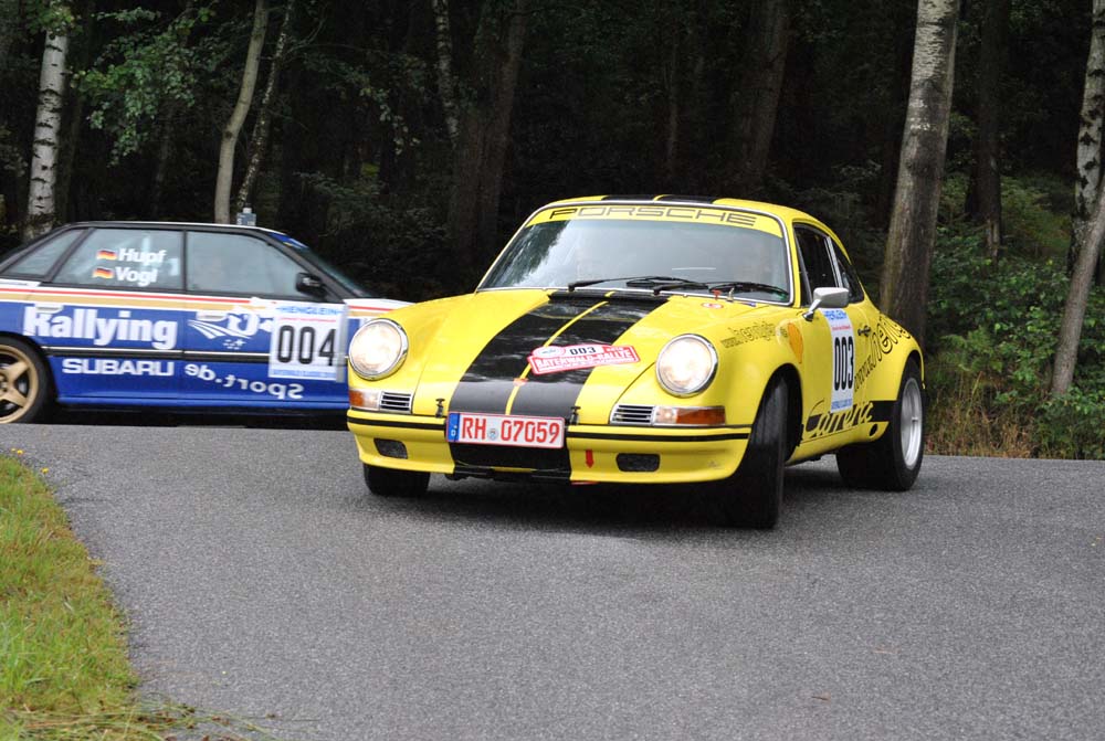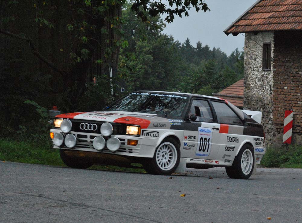 Pěkný pohled byl už na předjezdce, které vedl domácí soutěžák Karl Vogl s pěknou replikou Subaru Impreza v barvách Rothmans z roku 1989 , za ním jel známý Harald Demuth s Porsche 911, následovaný Klausem Fritzingerem s Datsunem 240 Z (vyhrál Bayerwald rallye v roce 1978) a nechybělo ani pěkné Audi Quattrro Gr. 4 z roku 1982 nesoucí na kapotě jméno Hannu Mikkoly jezdce Karl Heinze Zicka. Ve startovní listině jsme pak našli ještě Isoldu Holderiedovou, která jela s Peterem Göbelem s Toyotou Celica GT. Právě na našich úsecích mohla zavzpomínat na dobu, kdy tady s Mitsubishi kdysi bojovala o vítězství.