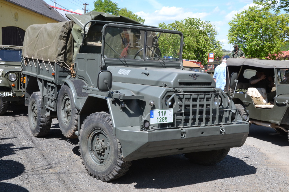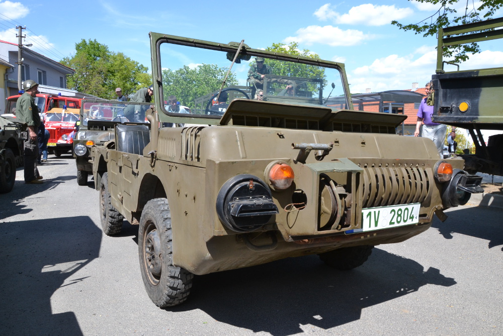 Kolona vojenských automobilů se nemůže obejít bez legendárního Jeepu Willys, více či méně „nastrojených“, kterému dělal společnost „ruský džíp“ Gaz. Z vítězné velmoci pocházel i obojživelný LuAZ 967.