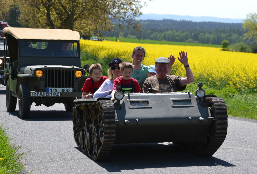 Vedle klasických historických automobilů a motocyklů totiž vlastní i nejrůznější vojenské automobily, v České republice většinou vzácné a málokdy k vidění. K opravdovým raritám patří francouzské pásové vozidlo Fouga VP 90 z první poloviny padesátých let, kterých bylo vyrobeno pouze 21 kusů. Není divu, že se o něj lidé hodně zajímali a děti toužili po svezení.