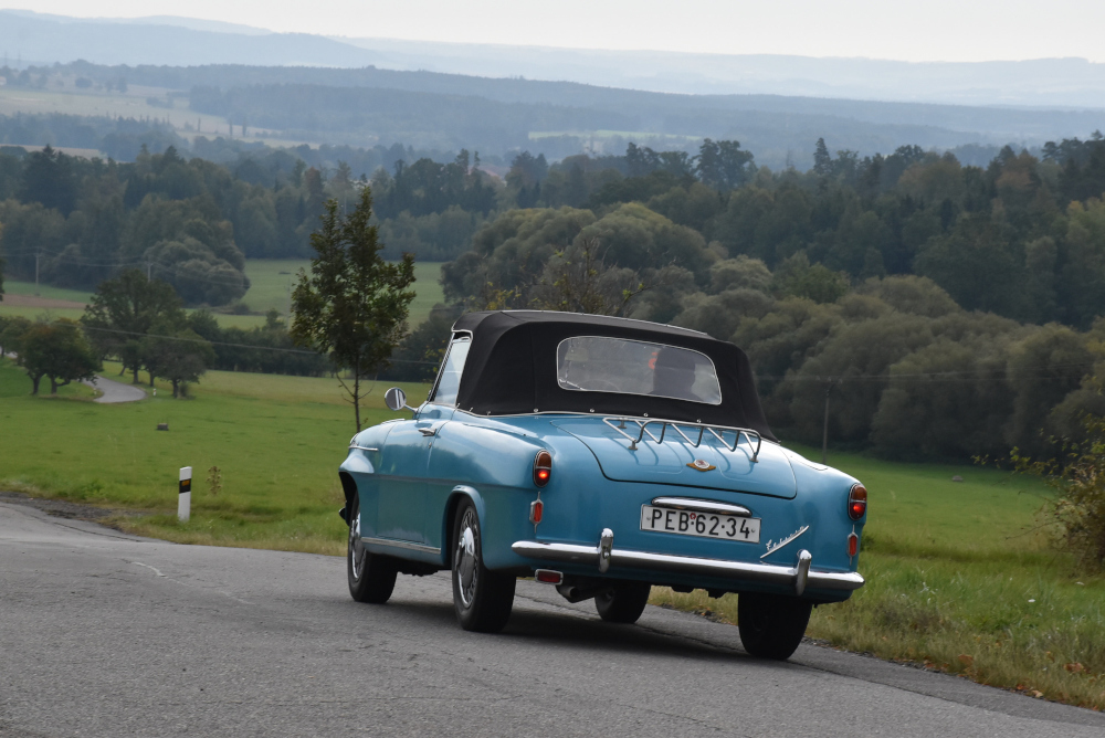 Dopoledne nabídla krásné úseky, prakticky z Náchoda na kraji Tábora až po Hlinice. Zvláště úsek Řevnov – Chotoviny, který se jel ještě za slušného počasí byl nádherný. Po obědě se nebe zakabonilo a když první posádky přijížděly Dolní Hracovicí na další krásnou část, tak začalo pršet a bylo bohužel po výhledech, Posádky a motocyklisté si užili krásný úsek právě z Dolní Hrachovice zhruba do Lejčkova. Doporučili jsme Marceli Gausemu pro příští rok trasu pouze otočit.