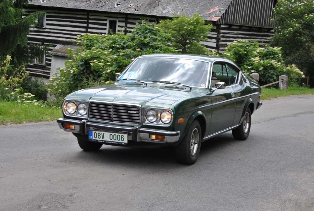 Rojení ale nejsou jen anglické automobily, ale objevili jsme třeba i pěknou Mazdu LA2 Coupe, která byla provozována v letech 1977 až 81 ve Švýcarsku. Poté byla v soukromé sbírce a od roku 81 do 2006 najezdila 120 km, dnes má 70 000 km a je v původním stoprocentním stavu, včetně autorádia Clairon Zajímavostí jsou i pneumatiky Michelin s kódem z roku 1978. Na voze jsou všechny žárovky původní stejně jako vše gumové, včetně všech vodních hadic u motoru. Jedinou úpravou byl v roce 2000 nástřik bezbarvého laku přes původní metalický. Pro švýcarský trh byl do vozu montován „pomalý zadek“, proto je jeho rychlost snížena o 25 km/h na 150 km/h