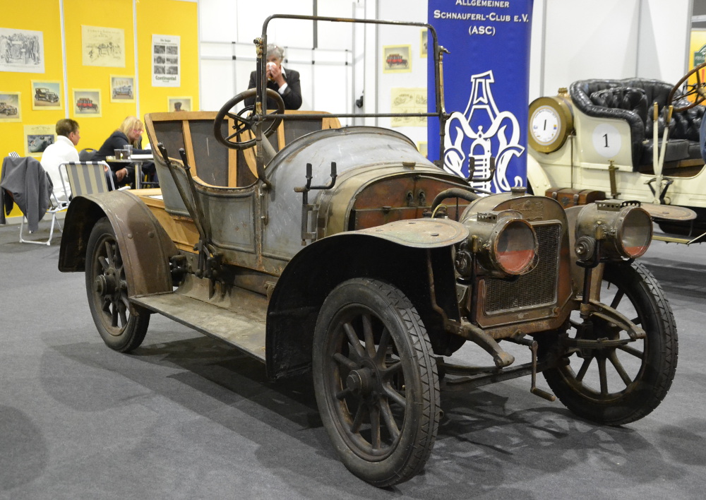 Předválečných automobilů bylo na výstavě jako šafránů, tři nejstarší kousky jsme našli na stánku německého autoklubu Schnauferl – nerestaurovaný Lion Peugeot VC3 z roku 1910 s litrovým jednoválcem o výkonu 9 k. Bylo vyrobeno pouze 135 kusů. Jen o rok mladší byl závodní Opel, který jsme mohli vidět před mnoha lety i na Zbraslavi. A třetím vozidlem byl elektromobil Milburn Electric Model 27 Brough z roku 1918. Elektromotor 76 V pocházel od firmy General Electric a umožňoval rychlost 40 km/h a ujel na jedno nabití až 80 kilometrů.