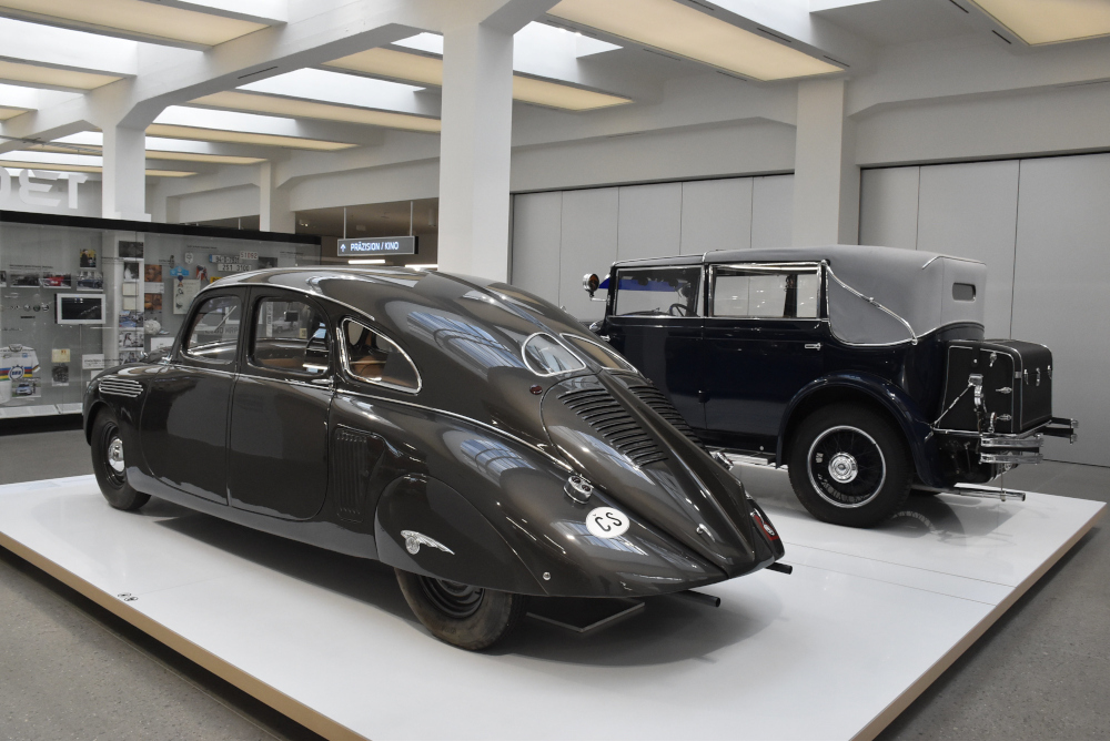 Dalším kontrastem reprezentativního vzhledu a sportovního střihu jsou vozy Škoda Hispano-Suiza (1928) a populární kupé Škoda 110 R (1971), dnes jeden z nejoblíbenějších oldtimerů.