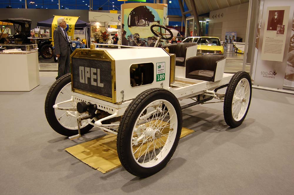Když začala poptávka po jízdních kolech stagnovat, přiklonili se k novému produktu, který sliboval velkou budoucnost – automobilu. V roce 1899 převzal Opel továrnu motorových vozů dvorního zámečníka Friedricha Lutzmanna z Dessau a ještě v témže roce představil „Opel Patent-Motorwagen Systém Lutzmann“, vozidlo o výkonu 3,5 k a na svou dobu s pozoruhodnou rychlostí 20 km/h. V roce 1902 byla výroba přeložena zpět do Rüsselsheimu, kde vznikl v následujícím roce první čtyřválec.