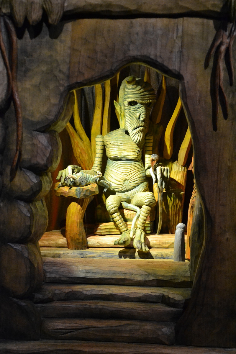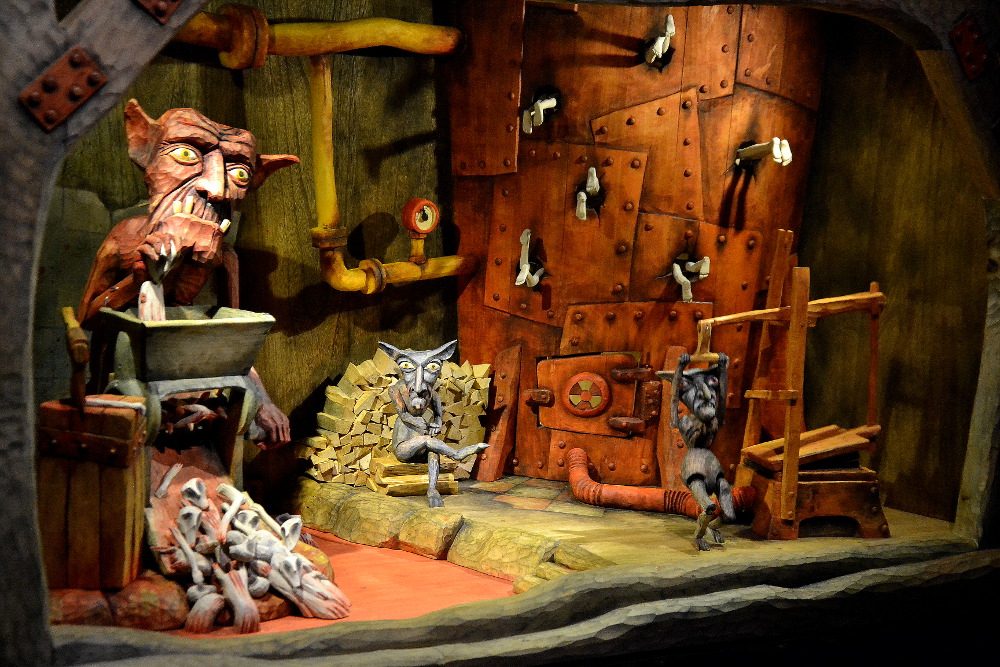 V její první části dělá antický básník Vergilius autorovi průvodce peklem. Návštěvníci pozorují, jaké tresty zakoušejí lidé za své hříchy. Za obžerství se topí ve splašcích a musejí se jimi živit. Vyřezávané loutky se skutečně propadají do bažiny. Zloději pak v pekle na Housce shoří po uštknutí hady. Duše sebevrahů zase končí vpletena do stromů a střeží je Harpie. Vše je doprovázeno hudbou, která dokonale pasuje, a výjevy jsou okomentovány cedulemi s popisem. V knize návštěv mě zaujal tento vzkaz: „Do pekla vážně nechceme!!!!!!!“ Mé děti, po shlédnutí a mém citlivém výkladu, prohlásily: „Maminko, my budeme hodnější.“ Dobrá zkušenost, bohužel, moc dlouho jim to nevydrželo.
