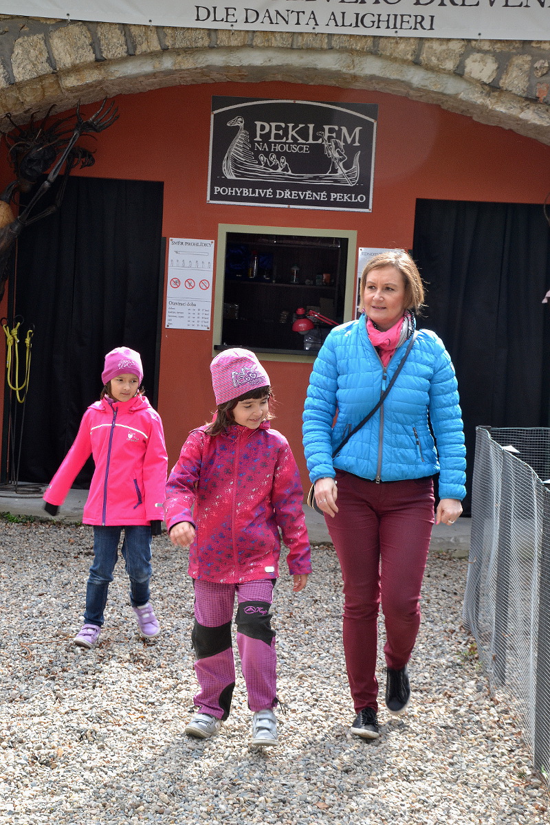 Do cíle cesty jsme dorazili bez sebemenších problémů. Ten den, na Veliký pátek, nás uvítalo sluníčko na hradu Houska. Velikým lákadlem je pohyblivé peklo z lipového dřeva. Toto peklo děsí a fascinuje návštěvníky všech věkových kategorií. Pohybuje se a vypadá stejně krásně jako betlém. Rozdíl je ale v tom, že místo Ježíška mu vévodí Lucifer. Hrad Houska leží mezi slavnějšími hrady Bezděz a Kokořín. Mluví se o něm jako o bráně do pekel.