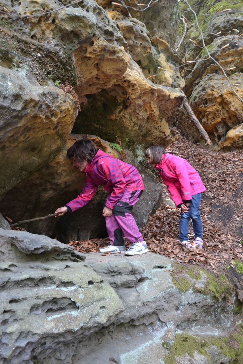 A protože byl Veliký pátek, a protože to bych nebyla já, abych nevymyslela pro děti nějaké zajímavé zpestření a protože ...Lidová tradice vypráví o údajném otevírání pokladů ve skalách. Poklad prý označovalo světýlko nebo kvetoucí kapradí, případně otvor ve skále. Žádný problém. Stačilo najít jen vhodné místo, otvor ve skále a přálo nám štěstí. Přímo nad nalezeným otvorem rostlo kapradí. Díky přírodo, pomyslím si v duchu a rychle ukládám „poklad“ na místo. Děti už jdou. Poučeny z Krkonošských pohádek zarecitovaly: „horo, horo, otevři se pro člověka poctivého a vydej mu málo z bohatství svého“. Co na tom, že nalezený poklad nebylo zlato, perly ani drahé kamení. Kinder vajíčko a drobné sladkosti udělaly dětem větší radost.