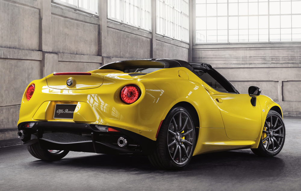 Označení Alfa Romeo 4C Spider připomíná bohatou sportovní historii značky. Zkratky 8C a 6C označovaly v 30. a 40. letech závodní a silniční vozy s osmi- a šestiválcovými motory. Tak jako kupé 4C, i nový model Alfa Romeo 4C Spider už svým pouhým názvem představuje návrat k „velkým“ Alfám Romeo. K tomu mu pomáhá celohliníkový přeplňovaný motor s přímým vstřikem paliva a mezichladičem stlačeného vzduchu. Tento čtyřválec se může pochlubit specifickým výkonem 136 k/litr zdvihového objemu.