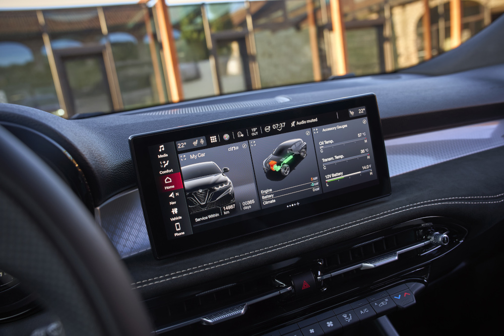 Druhé provedení doplňuje palubní deska potažená Alcantarou s kontrastním prošíváním. Sedadla disponují elektrickým nastavováním v osmi směrech, ve dvou osách nastavitelnou bederní opěrkou a funkcí vyhřívání i ventilace. Komfort doplňuje vyhřívaný volant i trysky ostřikovačů. Nový otočný volič převodovky na přepracované středové konzole spojuje moderní vzhled s funkčností a umožňuje řazení i prostřednictvím hliníkových páček pod volantem – typického prvku vozů Alfa Romeo.