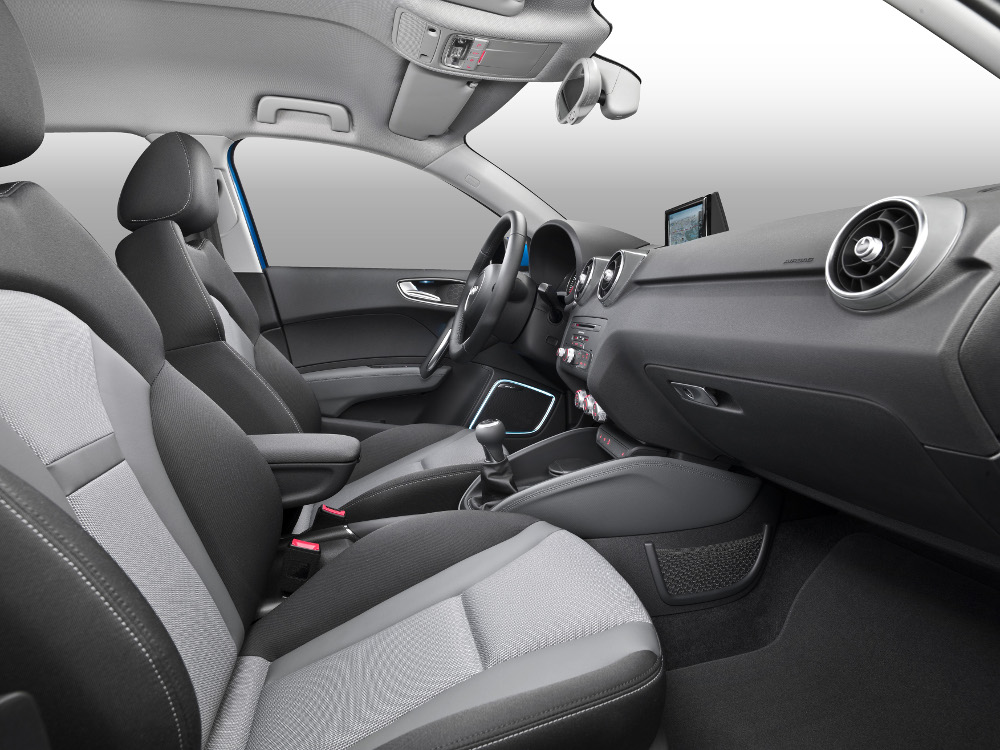 Interiér je prostorný a velmi kvalitní. Ovládání je přehledné a díky chromovaným lištám je vnitřní design ještě elegantnější. Díky novým liniím design a sport může zákazník dodat svému vozu Audi A1 Sportback ještě individuálnější ráz. Kromě toho jsou k dispozici pakety design selection, sportovní paket S line a celá řada dalších možností individualizace – od barevných výdechů ventilační soustavy až po ozdobné fólie pro karoserii. Rozšířen byl rovněž sortiment originálního příslušenství Audi, který poprvé zahrnuje kompletní paket výbavy. Active kit zahrnuje mimo jiné individuální vnější díly karoserie a kola v různých designech.