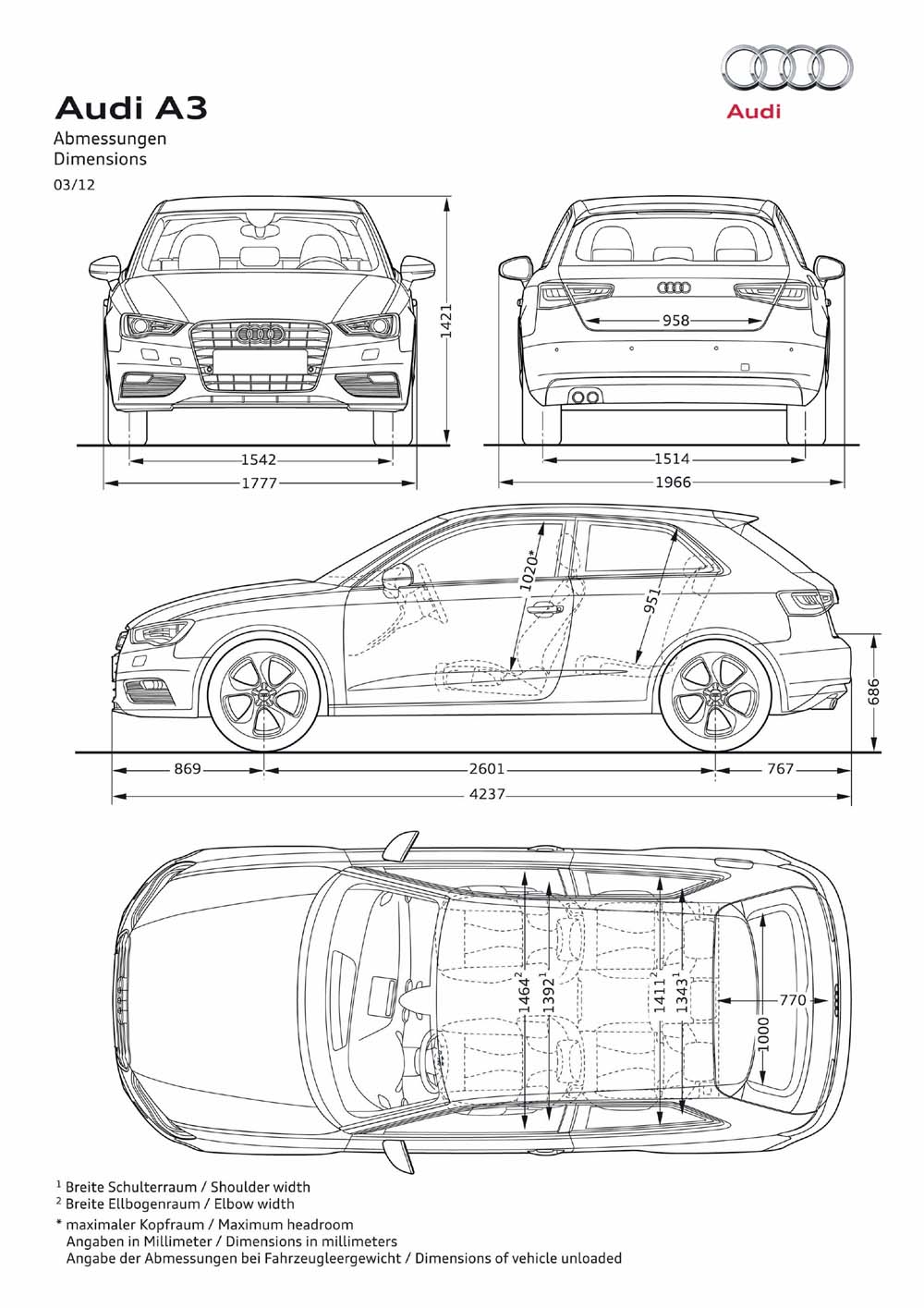 Atraktivní třídveřová karoserie s délkou 4,24 m se může díky technologii lehké konstrukce Audi ultra pochlubit nízkou hmotností. V porovnání s předchůdcem je nové Audi A3 až o 80 kg lehčí. Harmonicky nastavený podvozek se vyznačuje sportovní charakteristikou.