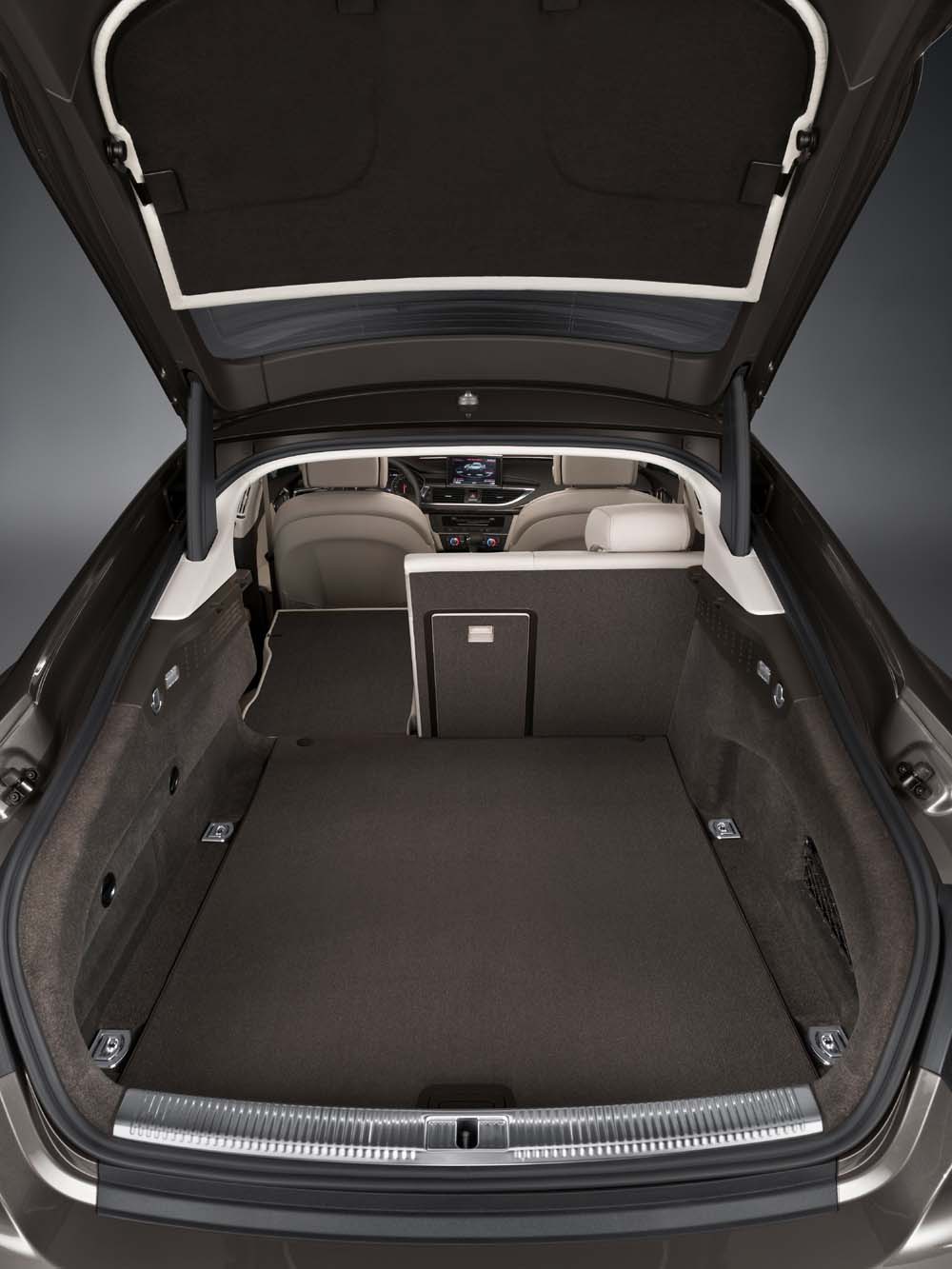 Ve čtyřmístném A7 Sportbacku jsou přední sedadla uložena ve sportovně nízké poloze a sériově je lze seřizovat v deseti směrech (na přání elektricky seřiditelné s pamětí a vyhříváním). Komfortní sedadla můžeme elektricky a pneumaticky seřídit ve 20 směrech. Vzadu jsou dvě pohodlná samostatná sedadla a díky dlouhému rozvoru velkorysý prostor.