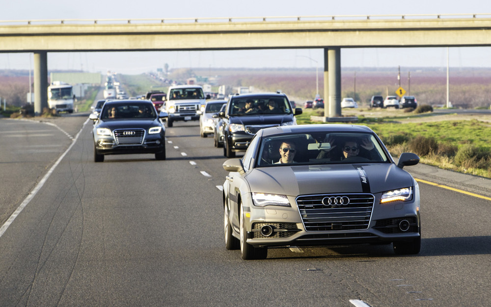 Novináři, kteří se zúčastní dálkové testovací jízdy o délce 550 mil, absolvovali před několika týdny výcvik na testovacím polygonu Volkswagenu v Arizoně. Na cestě ze západního pobřeží do Las Vegas se řidiči střídají za volantem po etapách dlouhých přibližně 100 mil. Pro jistotu sedí po celou dobu jízdy na sedadle spolujezdce profesionální testovací jezdec Audi.