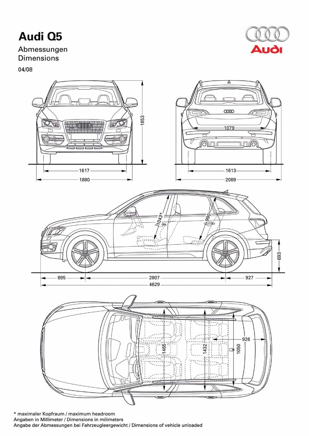 Profil vozu utvářejí velká kola a elegantní linie střechy s decentními podélnými lištami pro nosiče. Při pohledu zezadu prozrazuje rodinnou příbuznost s větším Audi Q7 víko zavazadlového prostoru, které je podobně jako přední kapota z hliníku. Zadní svítilny jsou v provedení s výraznou světelnou technikou LED.