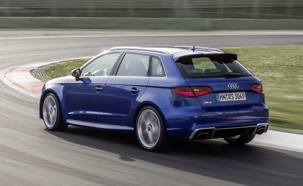 Zadní náprava s rozchodem kol 1514 mm má čtyřprvkovou konstrukci s rameny z vysokopevnostní oceli, která zachycují podélné a příčné síly odděleně. Stejně jako přední náprava je i zadní náprava uložena v pomocném rámu. Sportovní podvozek RS s tuhou charakteristikou snižuje světlou výšku v porovnání s modelem A3 Sportback o 25 mm. Na přání se dodává systém adaptivního tlumení Audi magnetic ride, jehož elektronické řízení je integrováno do sériově dodávaného systému řízení jízdní dynamiky Audi drive select, který nabízí režimy comfort, auto, dynamic a individual.