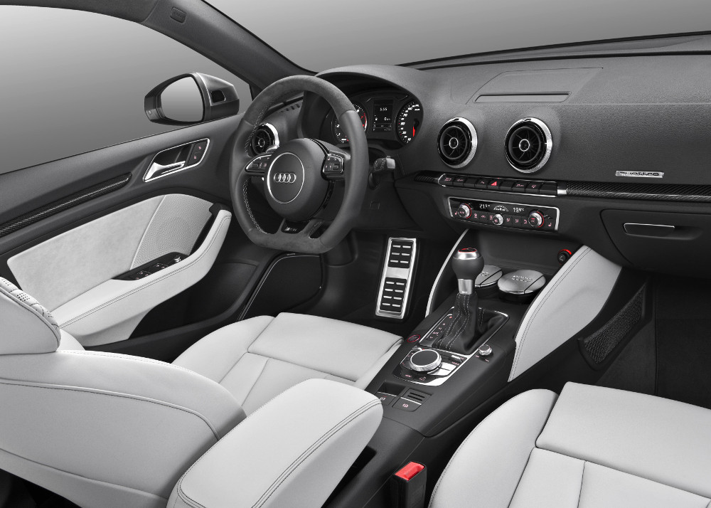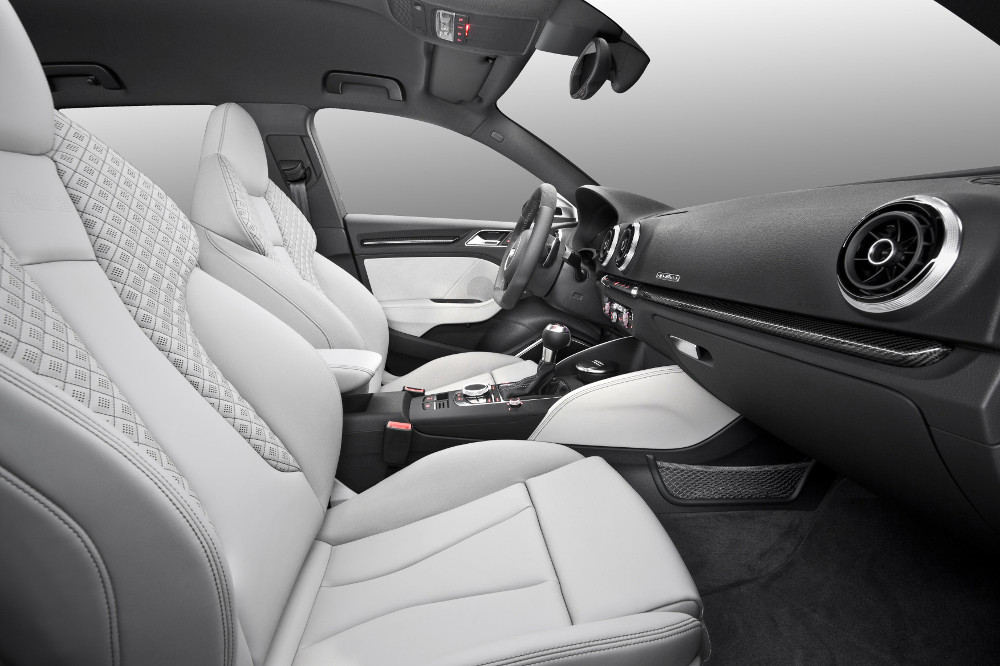 K sériové výbavě patří také parkovací senzory plus a MMI Radio. Na přání nabízí Audi sportovní sedadla S a poprvé v segmentu kompaktních vozů se objeví nově vyvinutá skořepinová sedadla RS s integrovanými bočními airbagy a skořepinou sedadla z uhlíkového kompozitu.