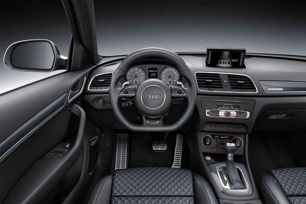 Dynamický charakter vnějšího designu nalézá pokračování v interiéru. Přístroje mají šedé podklady, bílé stupnice a červené ručičky. Audi nabízí sportovní sedadla v barevné kombinaci černá a modrá bez příplatku v kombinaci se stylistickým paketem RS performance na přání.
