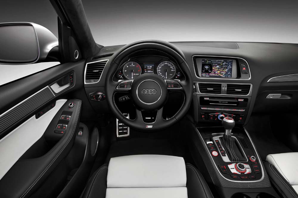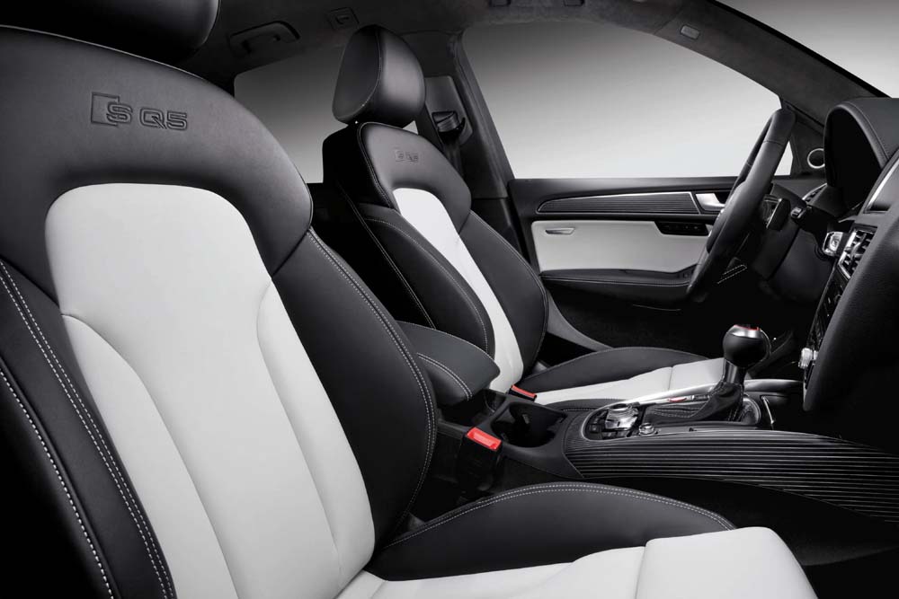 Ručičky přístrojů jsou bílé, pedály a páčky pro manuální řazení se lesknou hliníkovou povrchovou úpravou. Mezi nepřehlédnutelné prvky patří hlavice řadicí páky S, dále emblémy S na prahových lištách, tlačítko pro spuštění motoru, specificky tvarovaný volant, uvítací grafika S na displeji a paket vnitřního osvětlení. Zavazadlový prostor má objem až 1560 litrů, což činí z modelu SQ5 TDI ideální vůz pro sportovně založené zákazníky s aktivním životním stylem. S nejvyšší přípustnou hmotností přívěsu až 2,4 t je neobvykle silným tažným vozidlem.