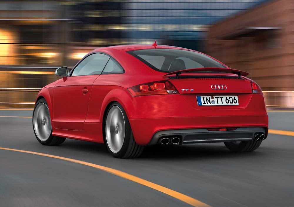 Audi TTS je na pohled rozeznatelné jako vrcholný model řady TT. Standardní kola z lehkých slitin o průměru 18“ zvýrazňují jedinečnost TTS, podobně jako nové xenonové světlomety s diodovými světly pro denní svícení.